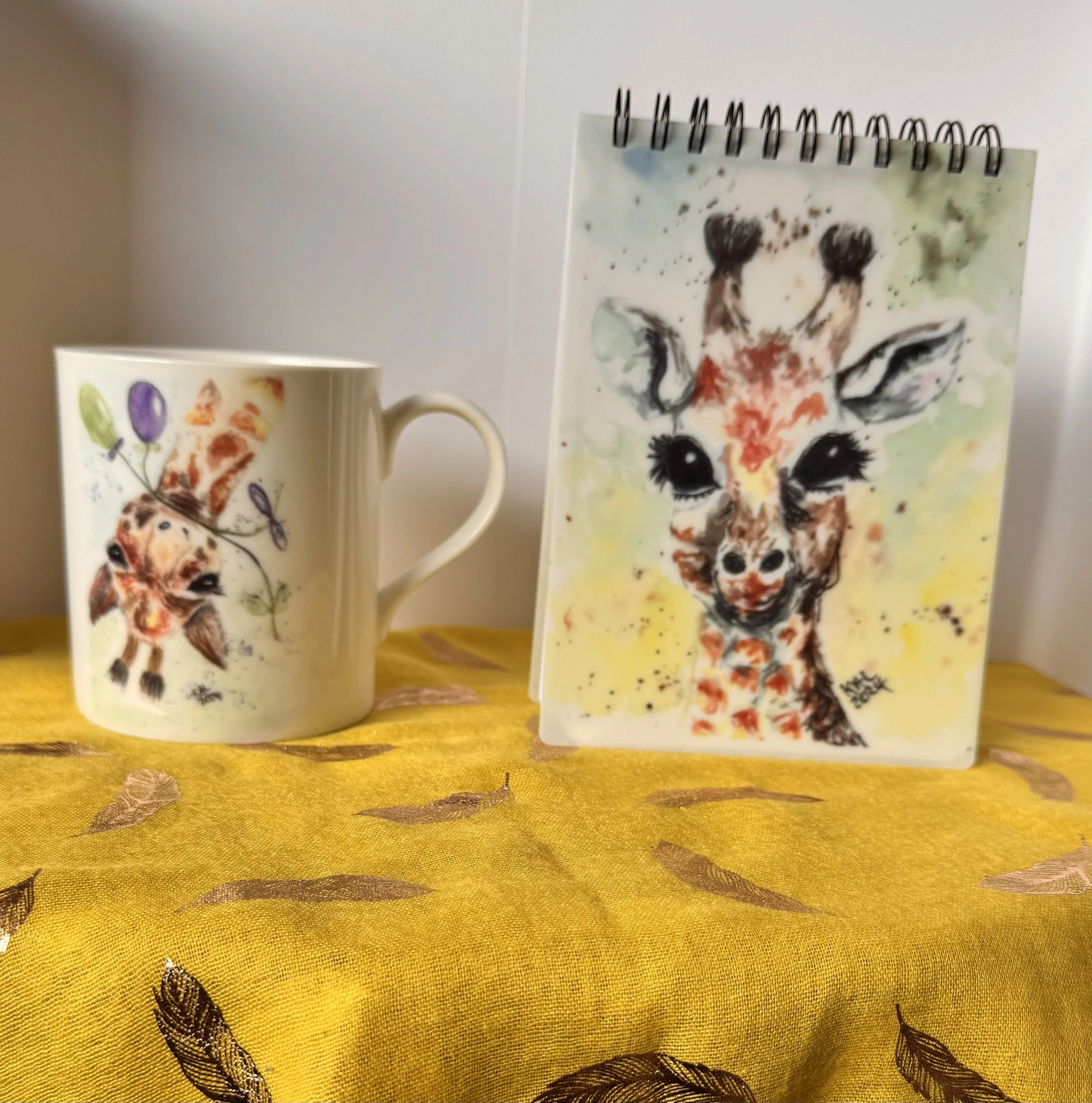 A6 ring binder notebook (no lines) inside. Giraffe design on both sides.
