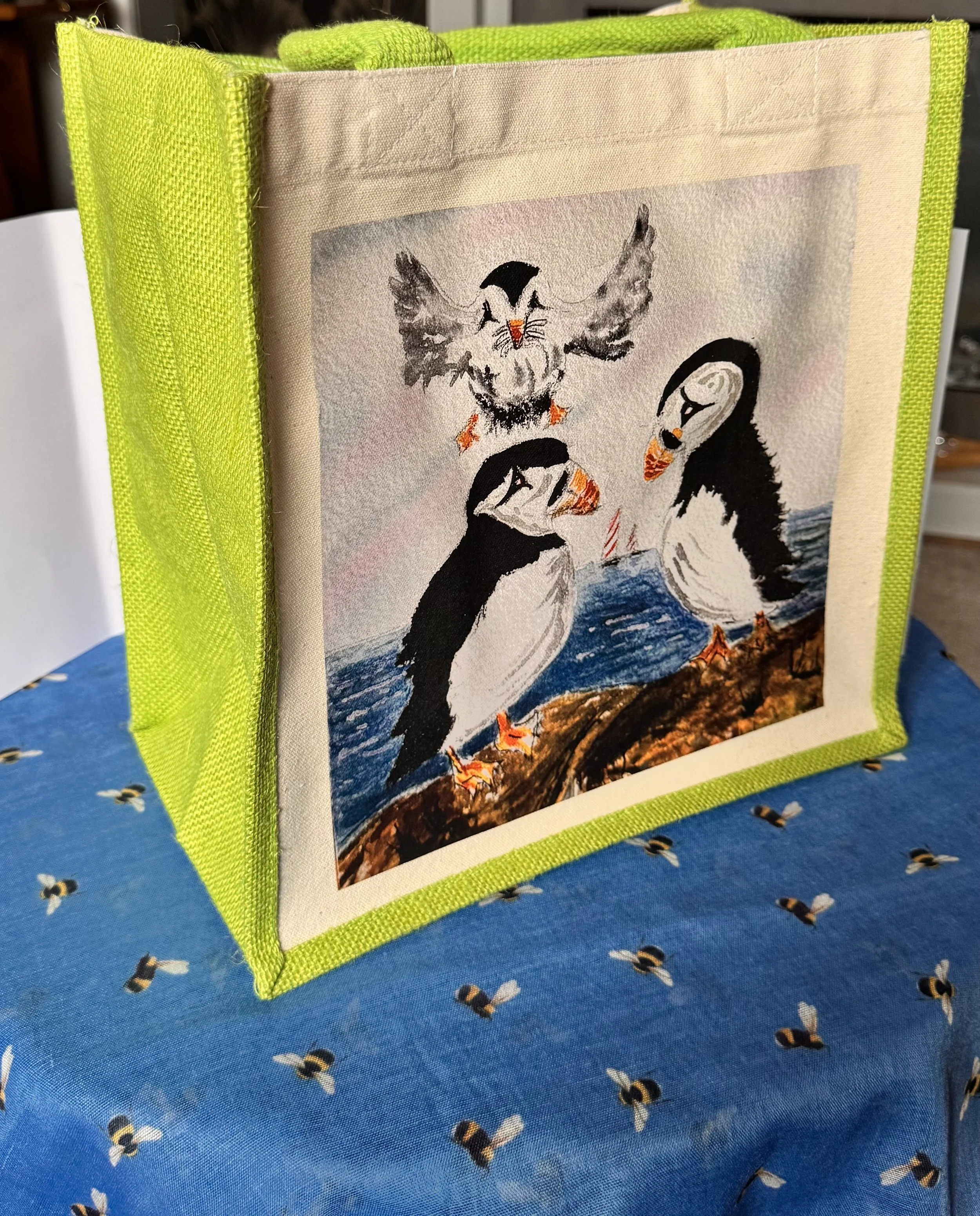 Midi Jute Tote Bag. Cotton carry handles. Handle length 40 cm